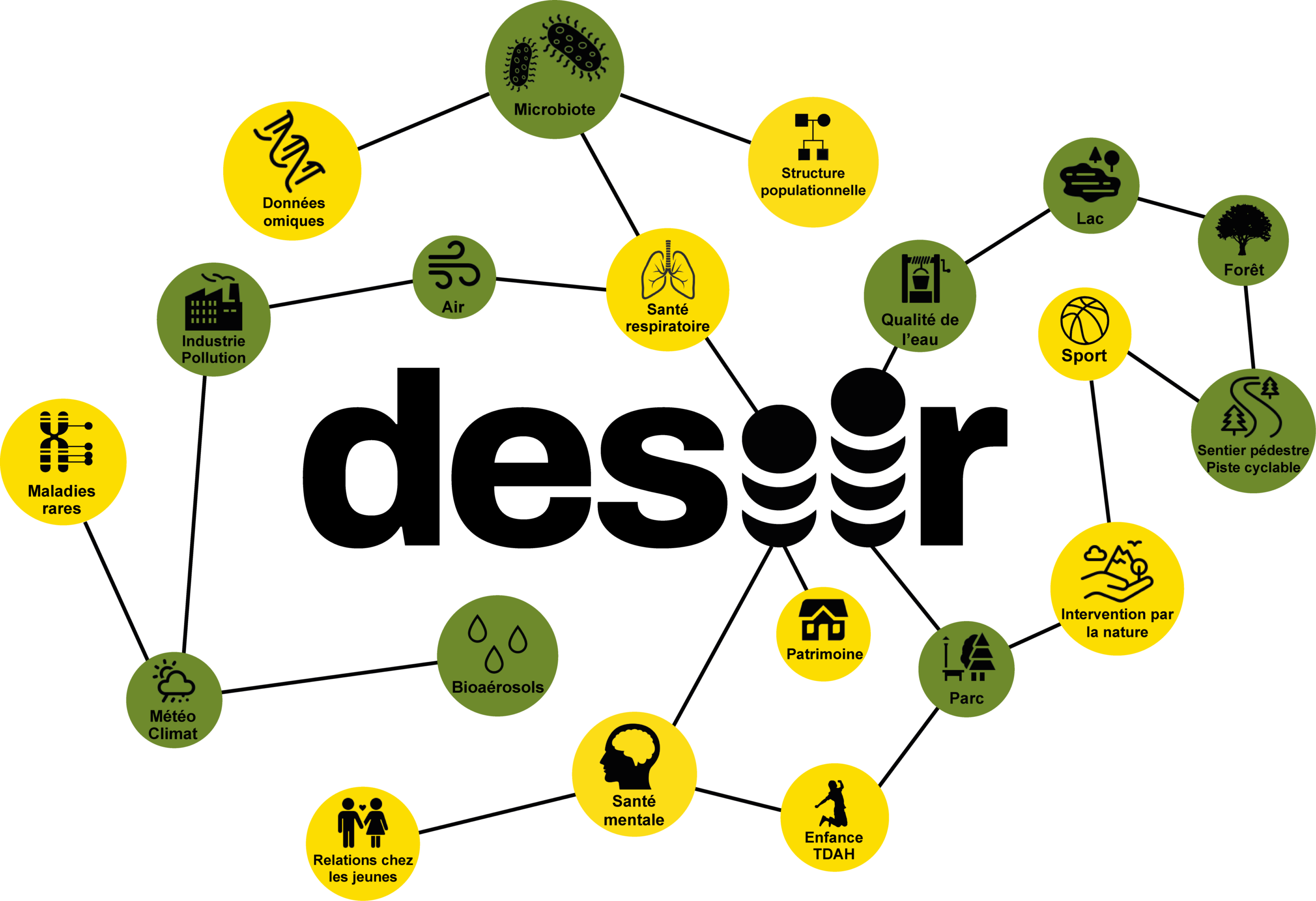 Le projet DESIIR (Données Environnementales et de Santé Intégrées pour une Infrastructure de Recherche) est une infrastructure majeure de l’Université du Québec à Chicoutimi qui a pour objectif de regrouper et mettre en valeur les données de recherche ainsi que les données provenant de partenaires, générées au Québec, sous un même écosystème numérique. Cette démarche intersectorielle permettra de connecter des données de différents domaines portant sur l’environnement, la santé physique, la santé psychosociale, la culture et sur la structure populationnelle afin de répondre aux enjeux complexes de santé dans un contexte de santé durable.